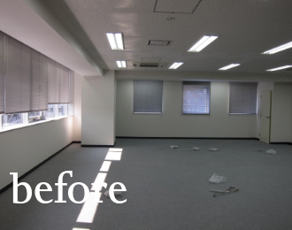 すでに空調や防災設備が備わっているビルインのテナントは、スケルトンからの工事と違い、コスト面を抑えられることが利点です。その分の予算を、家具や照明にまわしたり費用対効果の点でもおすすめです。ただし、事前に物件をきちんと調査しないと、用途変更(使う用途によって法の規制が変わる)や電気・ガスの容量不足なども問題も発生しますので、物件のご成約前にご相談いただければ対応いたします。