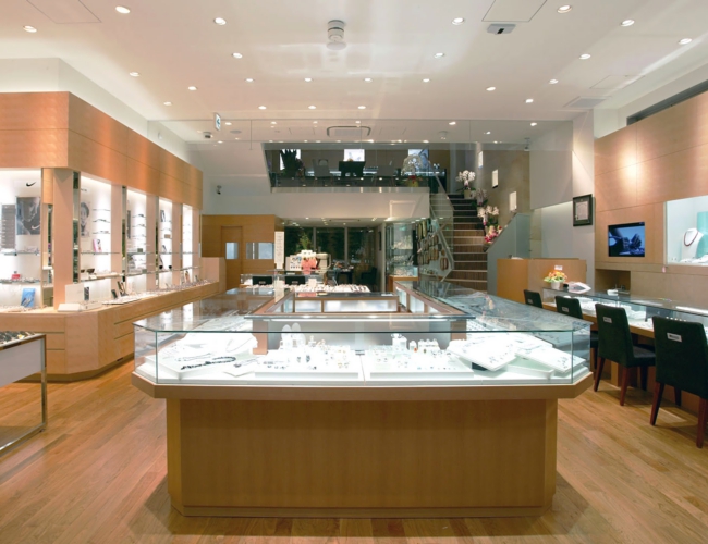 ジュエリーショップ,宝石店,時計店,眼鏡店,携帯ショップ,雑貨,アパレルショップ,コスメショップ,物販店の設計,デザイン,新築,改装,建築,開業の施工事例