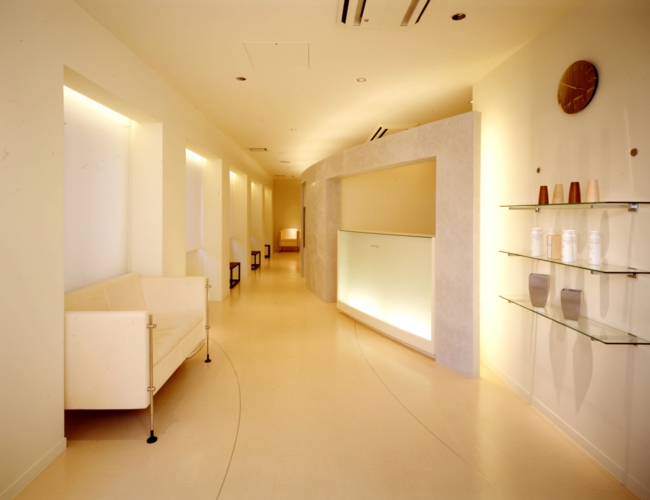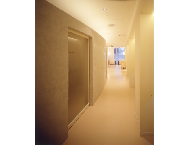 青山美肌/美容外科・皮膚科・美容形成外科/青山/ビルイン ■女性の肌をイメージしたソフトで安心の医療空間 美容・アンチエイジングを意識する女性層をターゲットにした医療空間、ビルインのテナントです。「美肌は安心の医療から」というテーマのもとに、女性の肌をイメージした柔らかく暖かみにあふれた空間デザインとしました。院長先生の治療のセンスや方針が空間やディテールにも反映される、というべく、美容施設に訪れる女性の、繊細な視点を意識したクラス感のある医療空間です。